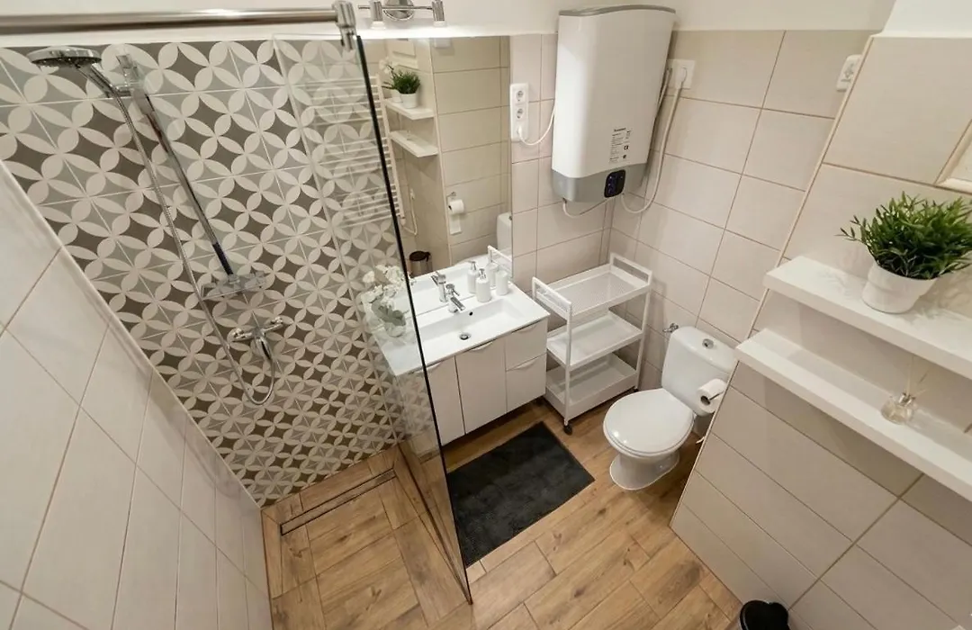 Para una estancia cómoda en Budapest, el apartamento cuenta con climatizador, además de opciones de entretenimiento como un televisor de pantalla plana con canales de cable. Los visitantes de la propiedad disfrutarán de la comodidad de un cuarto de baño con secadores de pelo y toallas de baño. También encontrarás ducha a ras de suelo y un inodoro separado.